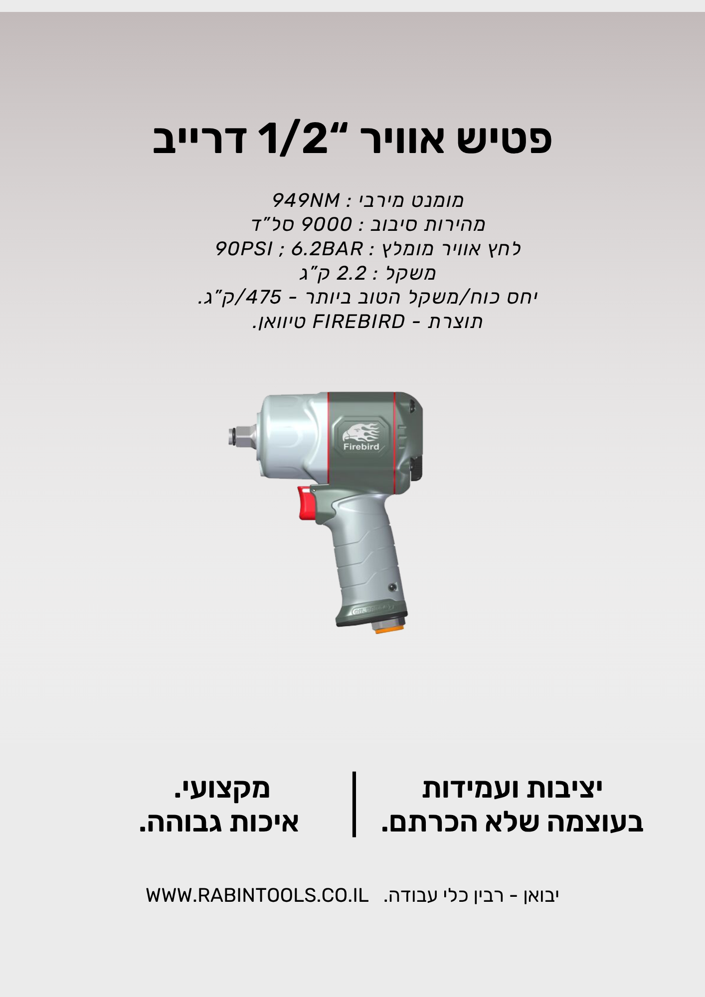 לחץ אוויר: 90PSI. יצרן: Firebird
